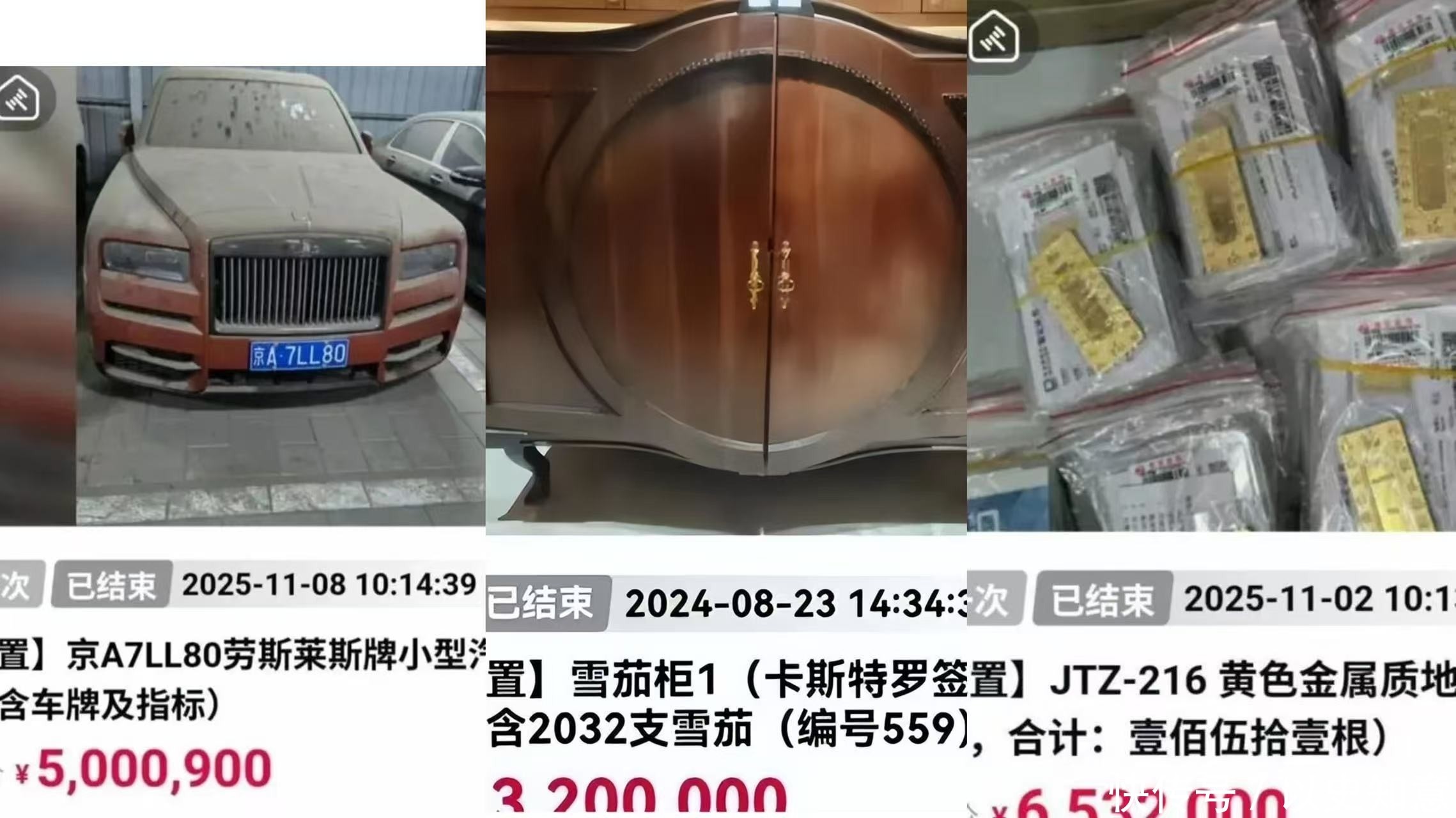 这些资产最终被陆续拍卖,劳斯莱斯500万成交,法拉利411万落槌,151根金条卖了653万。